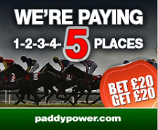 - Extra Place Specials – Paddy Power is paying 1/4 odds on 1st, 2nd, 3rd, 4th or 5th place finishes on extra place bets.